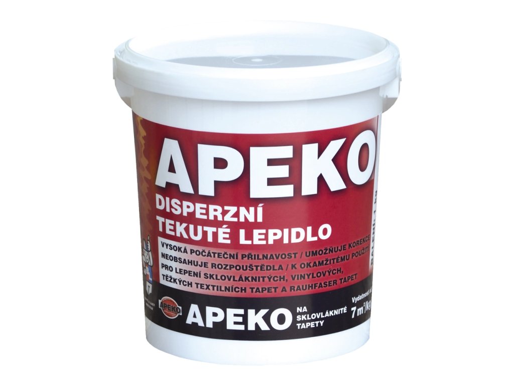 Apeko V1312 lepidlo na sklovláknité tapety k lepení těžkých textilních tapet, zejména tapet vyrobených ze skelných vláken k lepení na dřevo, umakart, beton, omítky a dřevěné materiály. Apeko lepidla na tapety je směs vodné disperze a derivátu celulózy s přísadou speciálních aditiv a fungicidních látek. Speciální ekologické lepidlo na tapety ze skelných vláken a těžké tkaninové tapety.