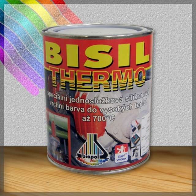 Bisil Thermo je speciálně vyrobená barva k ochraně ocelových a litinových povrchů vystavených cyklickému tepelnému namáhání. Používá se k ochranným nátěrům krbů, kouřovodů, parního potrubí, motorů, výměníků tepla, slunečních konektorů...
