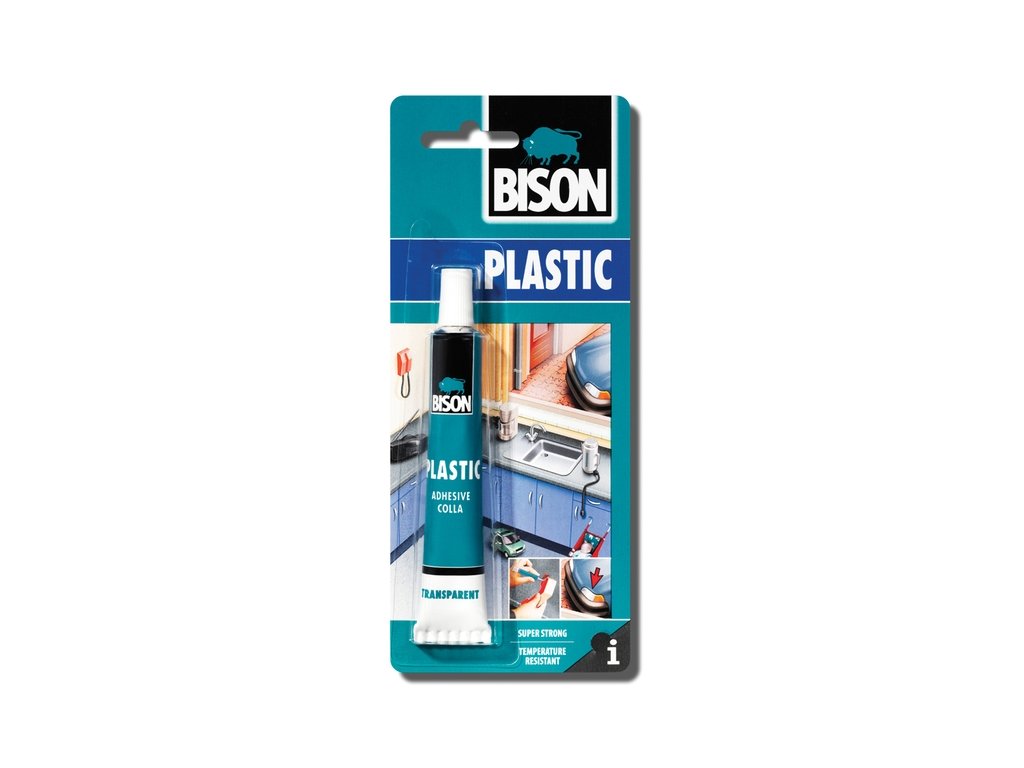 Bison Plastic transparentní, voděodolné, silné lepidlo pro lepení tvrdých plastů. Spoj je tvořen tzv. studeným svařením. Teplotám odolné lepidlo, které snese teploty až do +100°C.