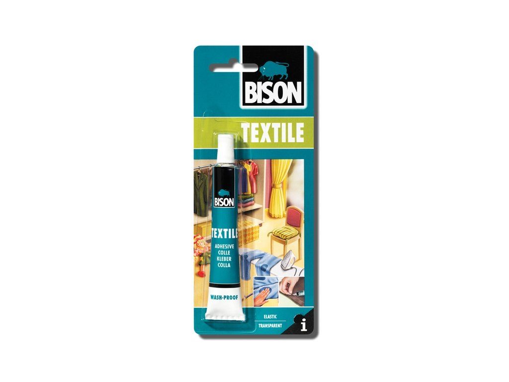 Bison Textil vynikající k lepení různých druhů textilií z přírodních materiálů. Slepené předměty lze je prát (+90°C), sušit a žehlit. Lepidlo je po zaschnutí transparentní. Je ideální pro domácí kutily.