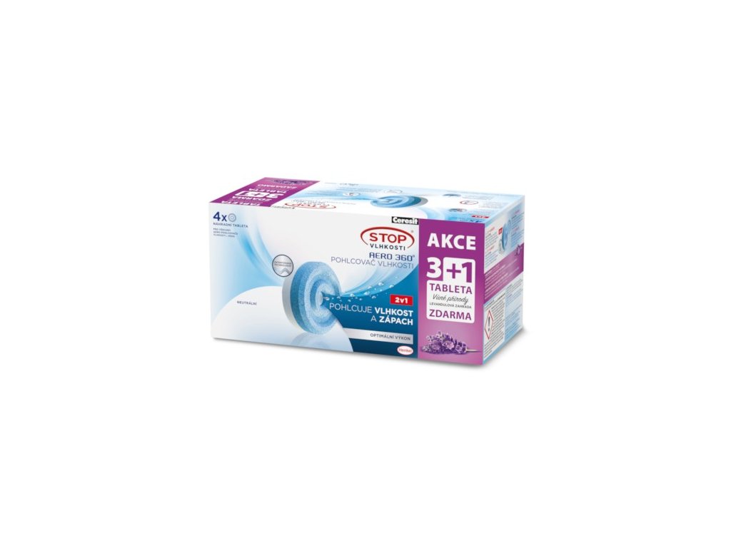 Náhradní tablety AERO 360° jsou nyní obohaceny i jemnou levandulovou a jarní vůní, která příjemně osvěží místnost. Kromě toho pohlcují nadměrnou vlhkost a optimalizují ji na správné hodnoty a zároveň neutralizují nežádoucí zápach až o 70%.