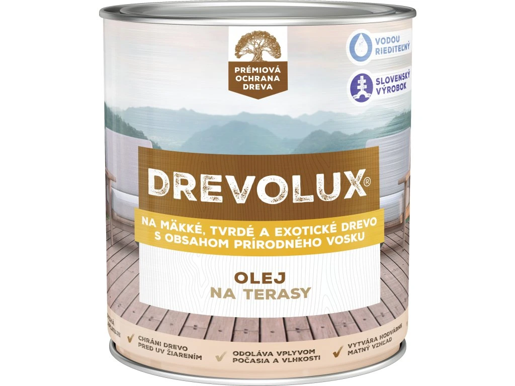 Drevolux Olej na terasy se používá na pravidelnou údržbu a ochranu dřevěných teras a jiných dřevěných pochozích ploch.