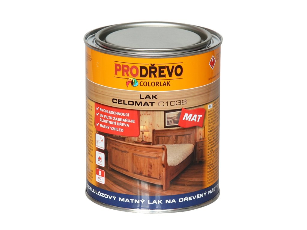 Celomat C1038 je nitrocelulózový matný lak na nábytek.