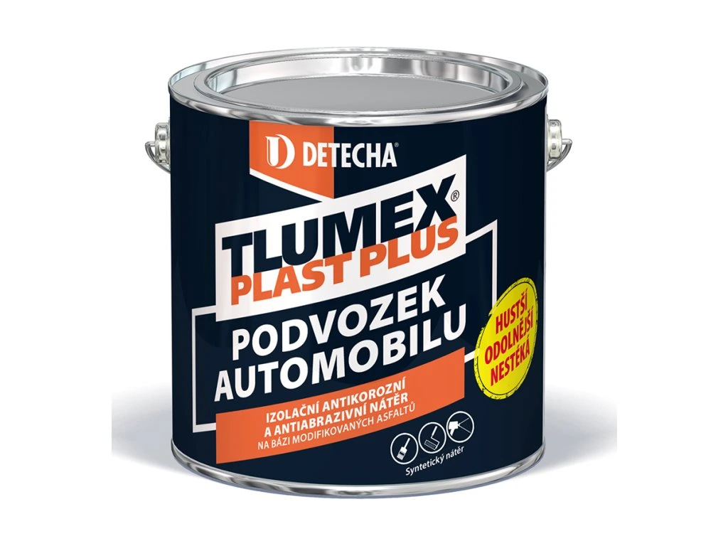 Tlumex Plast Plus je rychleschnoucí elastický antikorozní a antiabrazivní přípravek na bázi modifikovaných asfaltů určený k dlouhodobé ochraně spodních částí karoserie a podvozku automobilu.
