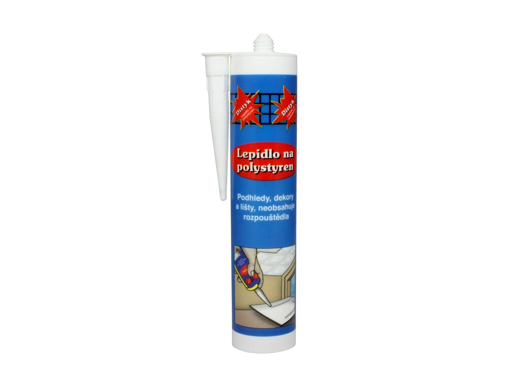 Distyk Lepidlo na polystyren je jednosložkové lepidlo na bázi disperze, vytvrzující odpařením vody, vytváří trvale pevný, vlhkotěsný spoj. Vysoce přilnavé na různé stavební materiály, v kombinaci savý - nesavý. Neobsahuje rozpouštědla. Použití: Lepení polystyrenových dekorativních podhledů na savé podklady, lepení polystyrenových rohových a ukončovacích lišt, včetně ozdobných dekorů, těsnění nerovností - vzniklých spár při lepení velkoformátových polystyrenových desek na různé stavební podklady. Charakteristika: - Snadná aplikace, bez rozpouštědel - Vysoká přilnavost k různým stavebním materiálům, v kombinacích savý - nesavý - Po vytvrzení přetíratelné - Vytváří trvale pevný, vlhkotěsný spoj Pracovní postup: Podklad musí být suchý, pevný, bez volných částic, prachu a mastnoty. U velmi savých materiálů lze zvýšit přilnavost použitím Penetračního nátěru S-T70 nebo penetrovat zředěným lepidlem v poměru 1 : 4 (lepidlo : voda). Lepidlo naneste na podklad v pruzích nebo bodech s odstupem cca 15 až 20 cm, nebo dávkujte přímo z kartuše. Lepený materiál přiložte na podklad a lehce přitlačte. Minimálně jeden z lepených materiálů musí být savý. Spotřeba: 300 až 600 g/m2.