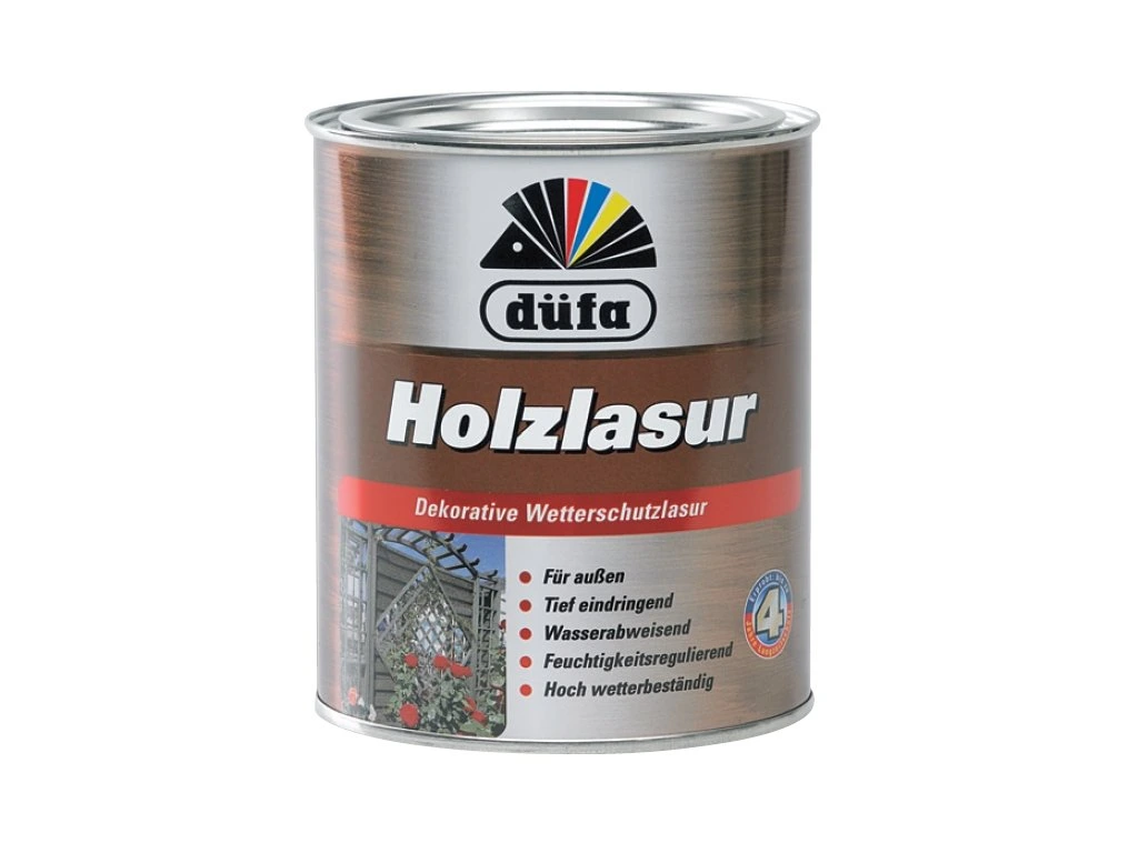 Lazura na dřevo LND - Holzlasur Popis produktu. Možnosti použití: impregnační tenkovrstvá lazura na ochranu dřeva - chrání před zamodralostí, hnitím a napadením houbou. Vhodná pro všechna tuzemská i zahraniční dřeva z listnatých i jehličnatých stromů. Dekorativní, dřevo chránící nátěr v tónech ušlechtilých dřevin na dřevěné stavební prvky jako jsou dřevěné domky, střešní přesahy, štíty, ploty, stropní obložení, podlahy, atd. Upozornění: Při nátěru tvrdého dřeva (buk, dub atd.) využijte poradenský servis výrobce! Nátěr není určen pro silné mechanické namáhání (např. nátěr podlahy bez následného přelakování ). U bezbarvého provedení (Farblos) se nedoporučuje samostatné venkovní použití. Při použití v náročnějších klimatických podmínkách a na silně zatěžovaných plochách je vhodnější použití tmavších barevných odstínů. Vlastnosti: - hluboký impregnační prostředek, paropropustný povrch - povrch je i po 2 nátěrech bez problémů přelakovatelný - vysoká odolnost proti vodě a povětrnostním podmínkám - transparentní provedení není určeno pro samostatné použití v exteriérech - pro vnější použití Barevný odstín*: dle vzorníku. *Reklamace barevného odstínu celoplošně aplikovaného materiálu, bez předchozího reklamování zkušebního nátěru malé plochy, bohužel nelze uznat. Stupeň lesku: hedvábný lesk Hustota: 0,91 g/cm3 Pojivová báze: alkydová pryskyřice Obsah látek: spec. alkyd. pryskyřice, anorg. pigmenty, aditiva, bezaromátová rozpouštědla Možnosti tónování: Dodávané odstíny jsou vzájemně mísitelné. Zpracování. Vhodný podklad: musí být čistý, pevný, suchý ( max. 15 obj. % vlhkosti ) , bez mastnoty, pryskyřic a jiných vrstev, které omezují průnik lazury do podkladu. Při zamodralých nebo zašedlých dřevěných plochách se doporučuje dát přednost tmavším odstínům, aby tak došlo k vyrovnání výsledné barvy. Tropické dřevo je nutno důkladně omýt nitroředidlem nebo vykartáčovat mosazným kartáčem. Dřevo silně savé nebo silně namáhané povětrnostními podmínkami ošetřit přípravkem düfa Holzgrund. Způsob nanášení: štětcem, houbou nebo nořením do barvy. Nástřik je vhodný pouze jako forma dopravy materiálu na natíraný povrch. Postup nanášení: Lazuru před použitím a příležitostně i během něj promíchat nebo protřepat. Obvyklá aplikace spočívá v nanesení 2-4 vrstev lazury, dle intenzity zatížení natíraného povrchu. V případě požadavku na zvýšení mechanické odolnosti povrchu je možné lazuru přelakovat vhodným transparentním lakem düfa. Teplota při zpracování: min + 5oC pro objekt i okolí, během zpracování i schnutí Doba schnutí suchý proti prachu po: cca 4 hod. při +20°C a 60% rel. vlhkosti vzduchu*: přetírat možno po: cca 12 hod. *Při nižších teplotách nebo vyšší vlhkosti vzduchu se doba schnutí výrazně prodlužuje. Při nestandardním použití /např. kombinace vodouředitelných a rozpouštědlových materiálů/ je nutná podstatně delší doba prosychání před následným nátěrem /řádově týdny/. Pro tyto aplikace doporučujeme provést zkušební nátěr nebo využít bezplatný poradenský servis výrobce. Vydatnost*: cca 13 m2/L v jedné vrstvě *Spotřeba je závislá na vlastnostech podkladu a způsobu nanášení. Pro přesnou kalkulaci doporučujeme provést zkušební nátěr. Ředění: Materiál je dodáván ve stavu k přímému použití. Pro zpracování neředit. Čištění nástrojů: Pracovní nářadí umýt v düfa Terpentin-Ersatz nebo düfa Pinselreiniger. Velikosti balení: 750 ml – 2,5 L – 5,0 L