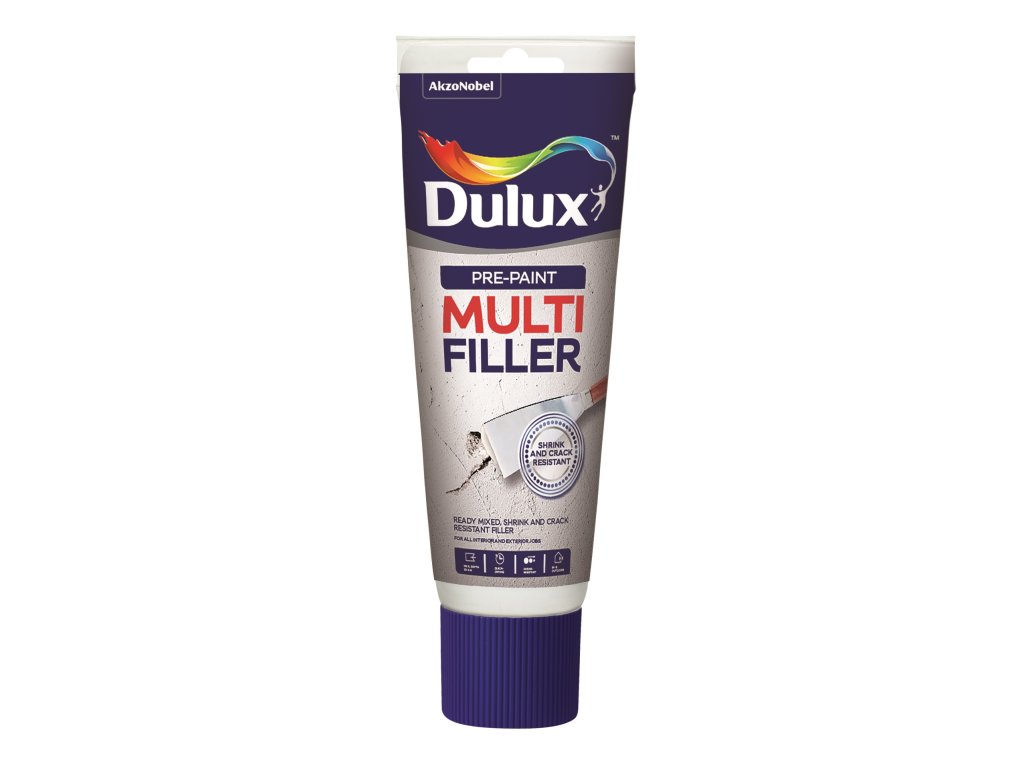 Dulux Multifiller je univerzální jemný tmel s krémovou konzistencí pro univerzální použití. Speciální pojidla zajišťují vynikající přilnavost a trvalou výplň, která se nesmršťuje ani nepraská. Po zaschnutí vytváří hladký a rovný povrch, který lze přebrousit nebo rovnou natřít jakýmkoliv nátěrem na vodní bázi. Pro použití v interiéru i exteriéru.