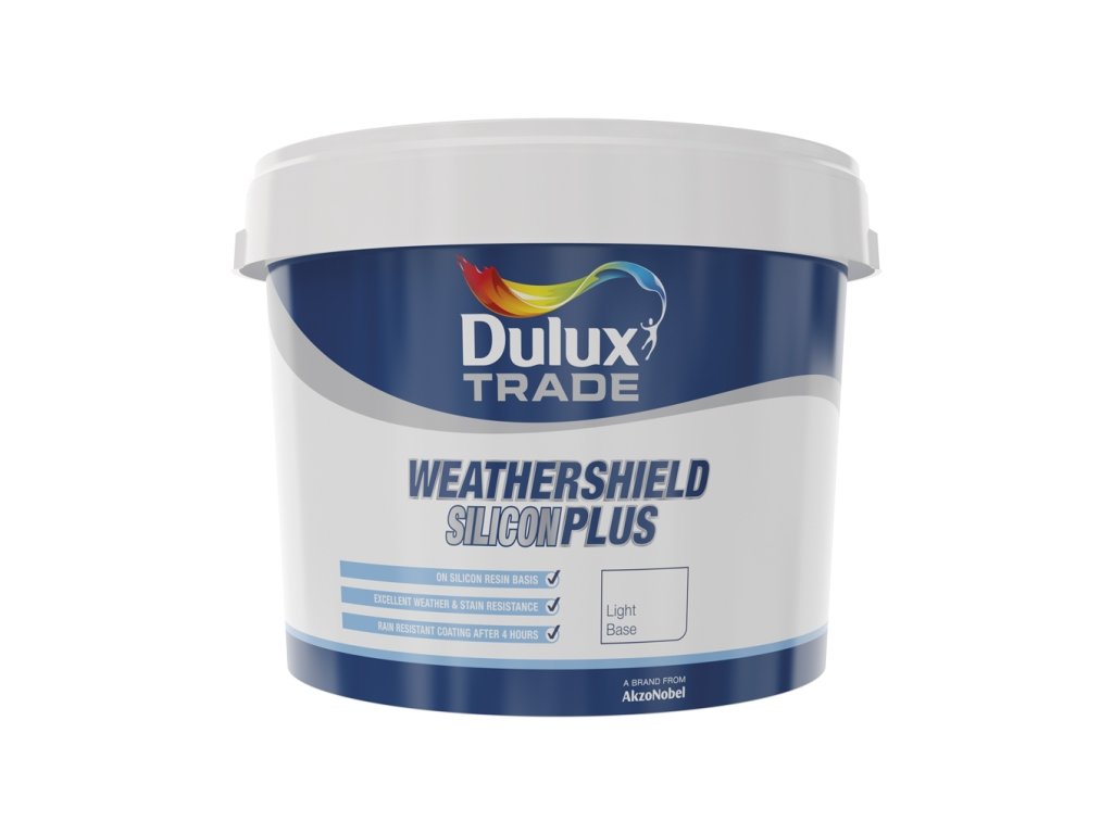 Dulux Trade Weathershield Silicon Plus je prémiová exteriérová fasádní barva na bázi siloxanové pryskyřice. Je výjimečně prodyšná pro vodní páry a CO2, mikroporézní a vodoodpudivá, chrání proti povětrnosti a škodlivému ovzduší. Zústává dlouhodobě čistá a odolává UV záření. Navíc obsahuje přísadu (0,3% pyrithionu zinku), nátěr je odolnější proti růstu řas a mechů a napomáhá dlouhé životnosti nátěru. Vysychá bez vnitřního pnutí, což zaručuje skvělou přilnavost k podkladu.