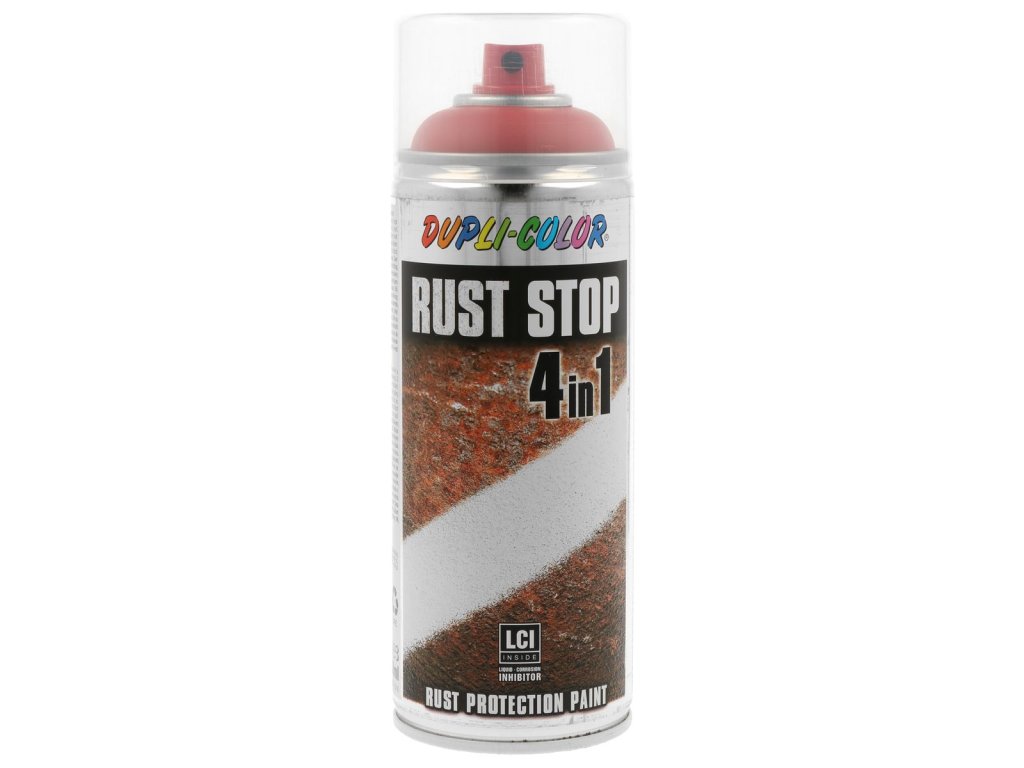 Dupli-Color Rust Stop 4v1 systém, zabezpečuje univerzální, komfortní řešení nátěrů a antikorozní ochrany široké škály povrchů. Jedná se o samozákladové antikorozní spreje s použitím na novou, zkorodovanou, resp. natřenou ocel, včetně pozinkovaných povrchů, mědi, zinku i hliníku.