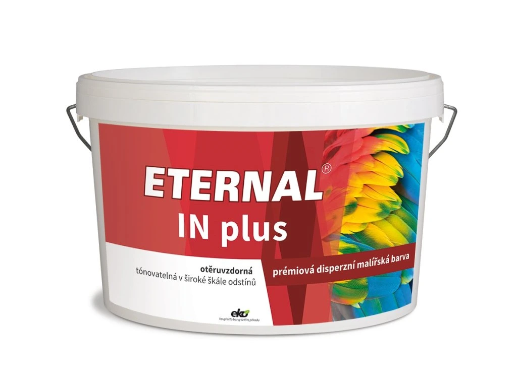 Eternal IN Plus je určen k povrchové úpravě stěn interiérů ze sádrokartonu, minerálních nebo akrylátových omítek, betonové, azbestocementové a dřevotřískové povrchy a jiné savé podklady. Je určen pro nátěry interiérů veřejných budov jako školy, nemocnice aj., kde jsou kladeny zvýšené požadavky na otěruvzdornost a omyvatelnost nátěrů. Eternal IN Plus má vysokou kryvost, je bez nepříjemného zápachu. Vytváří zářivě bílé, omyvatelné nátěry otěruvzdorné za vlhka a propustné pro vodní páru.