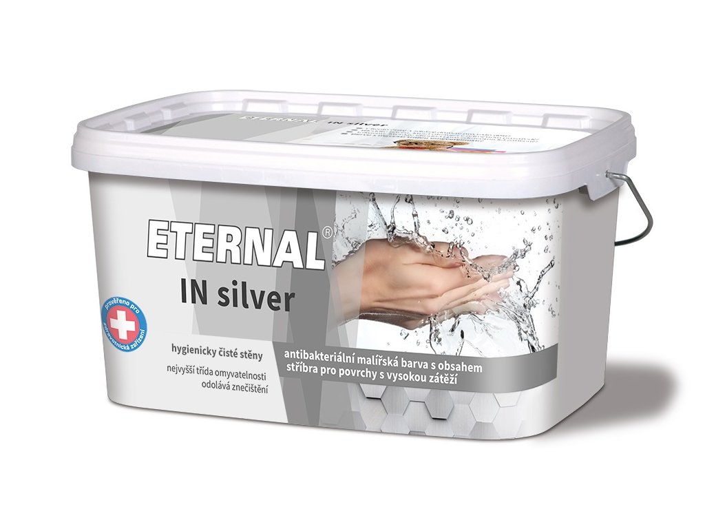 Eternal IN silver je antibakteriální malířská barva obsahující koloidní stříbro, která vytváří hygienické nátěry dlouhodobě odolné napadení bakteriemi.