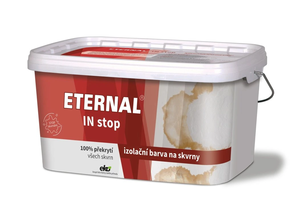 Eternal In Stop je izolační interiérová nátěrová hmota zabraňující průniku skvrn z podkladu.