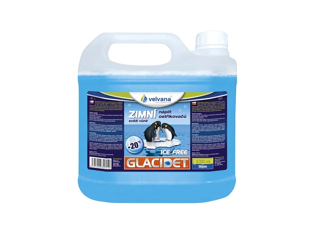 Glacidet je kapalina použitelná při teplotách do - 40 st. C. Při nižších požadavcích lze ředit vodou. Dokonale odstraní všechny nečistoty a zanechá křišťálově čisté sklo. Nenarušuje laky na automobilů a chrání zařízení ostřikovačů před korozí.