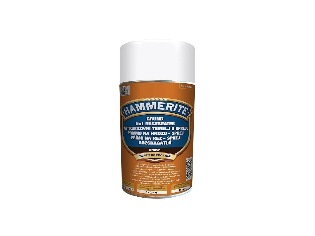 Hammerite No.1 Antikorozní sprej je antikorozní základová a vrchní barva pro stabilizaci rzi a pro přímou aplikaci na holou a rezavou ocel. Stabilizuje stávající rez a vytváří bariéru, která zabraňuje dalšímu rezivění. Pomáhá vyrovnat drsné a nerovné povrchy. Ideální pro použití na silně zkorodované povrchy nebo povrchy vystavené silnému negativnímu vlivu počasí.