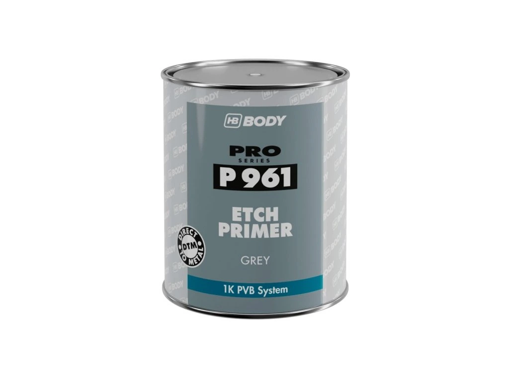 Na povrch Body 961 Etch Primer nepoužívejte žádný polyesterový produkt, vždy vytvořte mezivrstvu v podobě plniče (P360, 300, P333, P334).