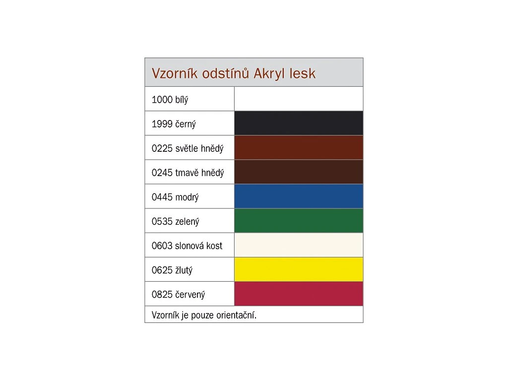 univerzální vodou ředitelná akrylátová lesklá barva na dřevo i kov - pro vnitřní a venkovní nátěry dřeva, dřevovláknitých a dřevotřískových desek, betonu, papíru a kovových podkladů opatřených základním antikorozním nátěrem.