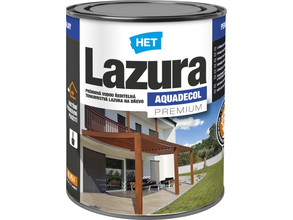 Vysoce kvalitní prémiová vodou ředitelná tenkovrstvá lazura s přídavkem kvalitních vosků a s UV-ochranou pro dekorativní a ochranné venkovní či vnitřní nátěry dřeva. Lazura je ošetřena účinnými fungicidními přípravky a její nátěrový film tak lépe odolává plísním.