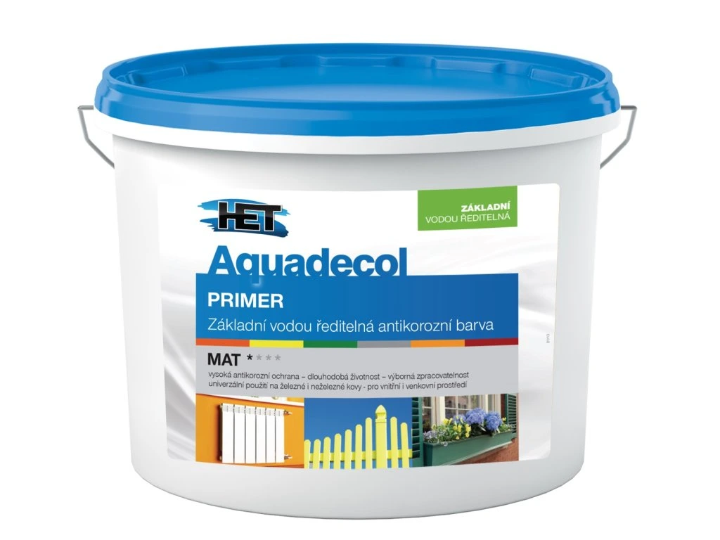 základní vodou ředitelná antikorozní barva - k základním nátěrům železných a neželezných kovových podkladů jako jsou ocelové, pozinkované, měděné či hliníkové materiály.