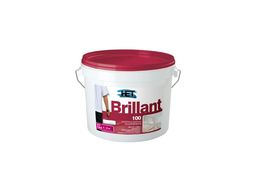 Het Brillant 100 bílá interiérová disperzní omyvatelná barva vhodná pro reprezentativní obývací a komerční prostory, dětské pokoje, kuchyně, koupelny, nemocnice, školy apod.