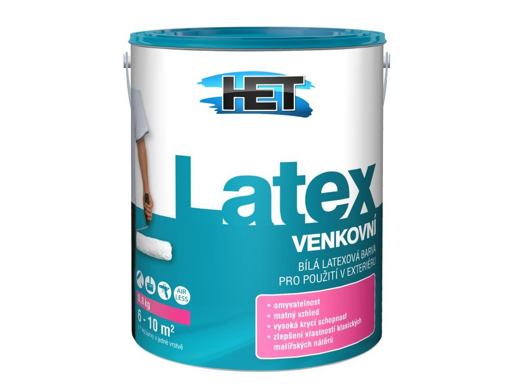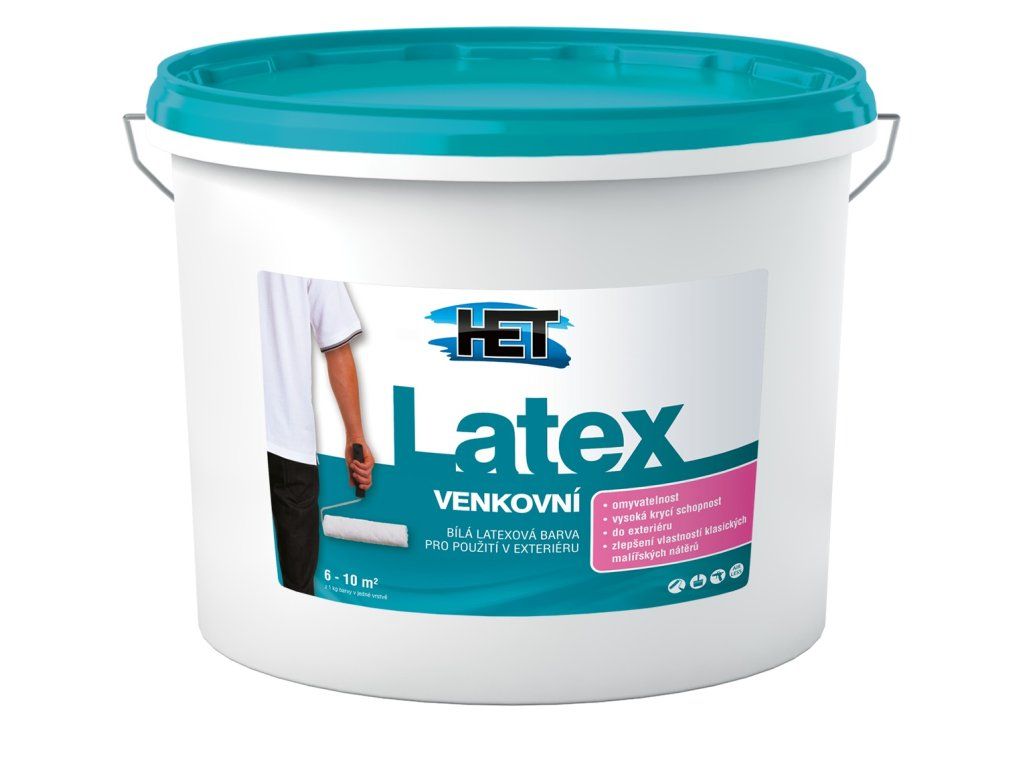 Bílá latexová barva pro použití do exteriéru vhodná pro užitkové a hospodářské prostory v exteriéru, sklady, sokly, nenáročné aplikace, je-li požadován omyvatelný povrch.