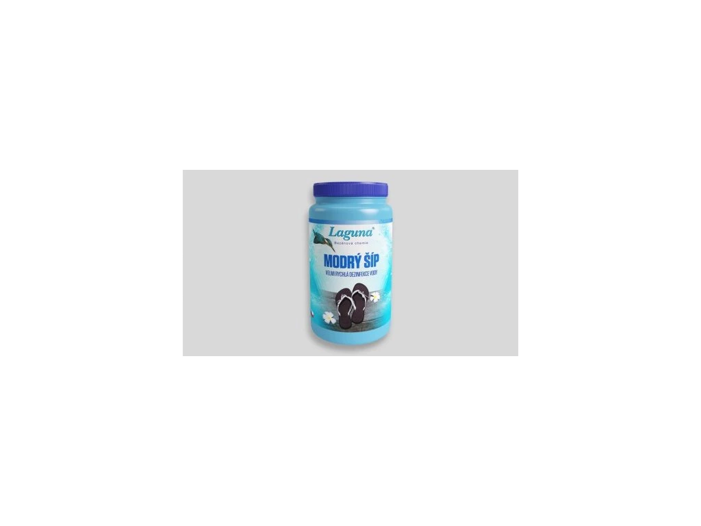 Laguna Modrý šíp slouží k šokové dezinfekci bazénové vody s rychlým úbytkem přebytečného chloru z vody a možností koupání ve velmi krátké době po ošetření. Použití: Přípravek se používá pro rychlou chlorovou dezinfekci bazénové vody při silném mikrobiálním znečištění. Při dávkování dochází k vizuální změně bazénové vody a odstranění barevného zákalu. Návod k použití: Přípravek se před použitím rozpustí ve vědru vody a poté se dávkuje stejnoměrně do bazénové vody při zapnuté fi ltraci. Může mít bělící účinky na dno a stěny bazénu. Vydatnost: K rychlé šokové dezinfekci - 10–20 g/m3 vody (1–2 rovné polévkové lžíce). „Používejte biocidy bezpečným způsobem. Před použitím si vždy přečtěte označení a informace o přípravku“ Spotřeba: 10 - 20 g/m3 vody (1 - 2 rovné polévkové lžíce). Balení: 1 kg