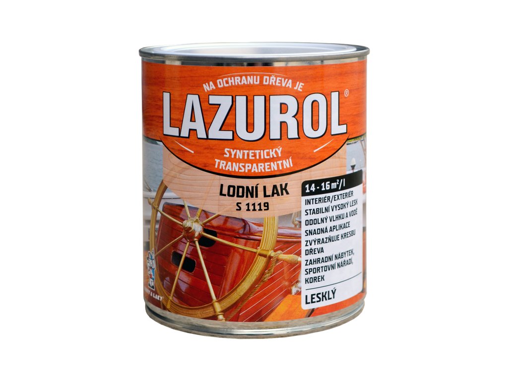 1. 1x lak lazurovací LAZUROL CLASSIC S 1023 nebo fungicidní napouštědlo LAZUROL IMPREGNAČNÍ ZÁKLAD S 1033 2. 2x lak syntetický LAZUROL LODNÍ LAK S 1119. Druhý a další nátěr lakem je možno provádět za 24 hodin. Optimální tloušťka jedné vrstvy nátěru je 25-30 mikrometrů.