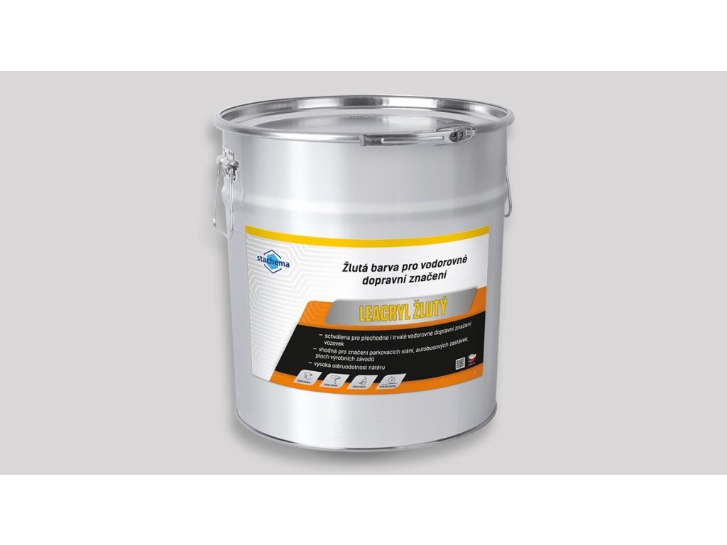 Rozpouštědlová, jednokomponentní, rychleschnoucí akrylátová barva. Barva LEACRYL ŽLUTÝ je schválena pro přechodné (s posypem Swarco Solidplus 50 Verkehrsgelb 100-800 T14 GG30) a trvalé (s posypem Sovitec MBG1B2T (P)) vodorovné dopravní značení.