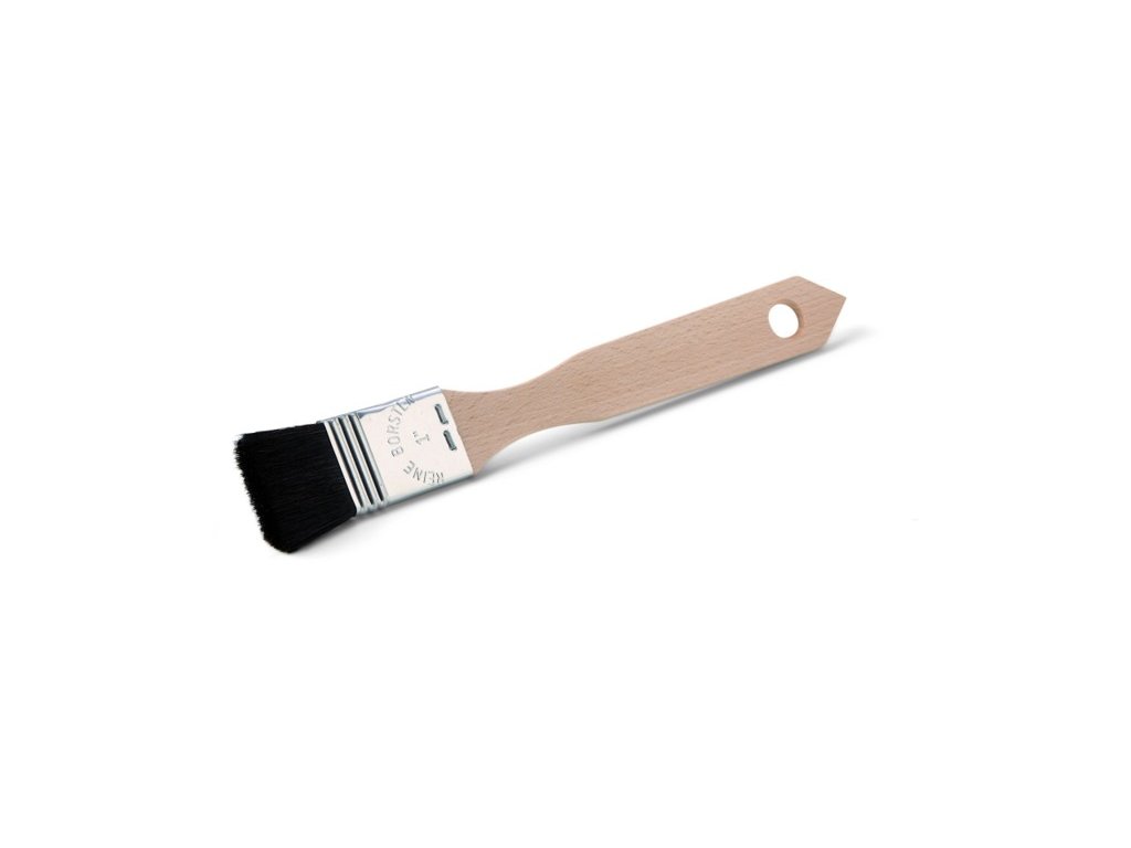 černá štětina z hovězího chlupu, kovová spojka, přírodní dřevěná rukojeť, velmi jemné špičky a velmi dobře se hodí na různé podklady, určeno na všechny barvy, tvoří hladký nátěr na povrchu bez struktury.