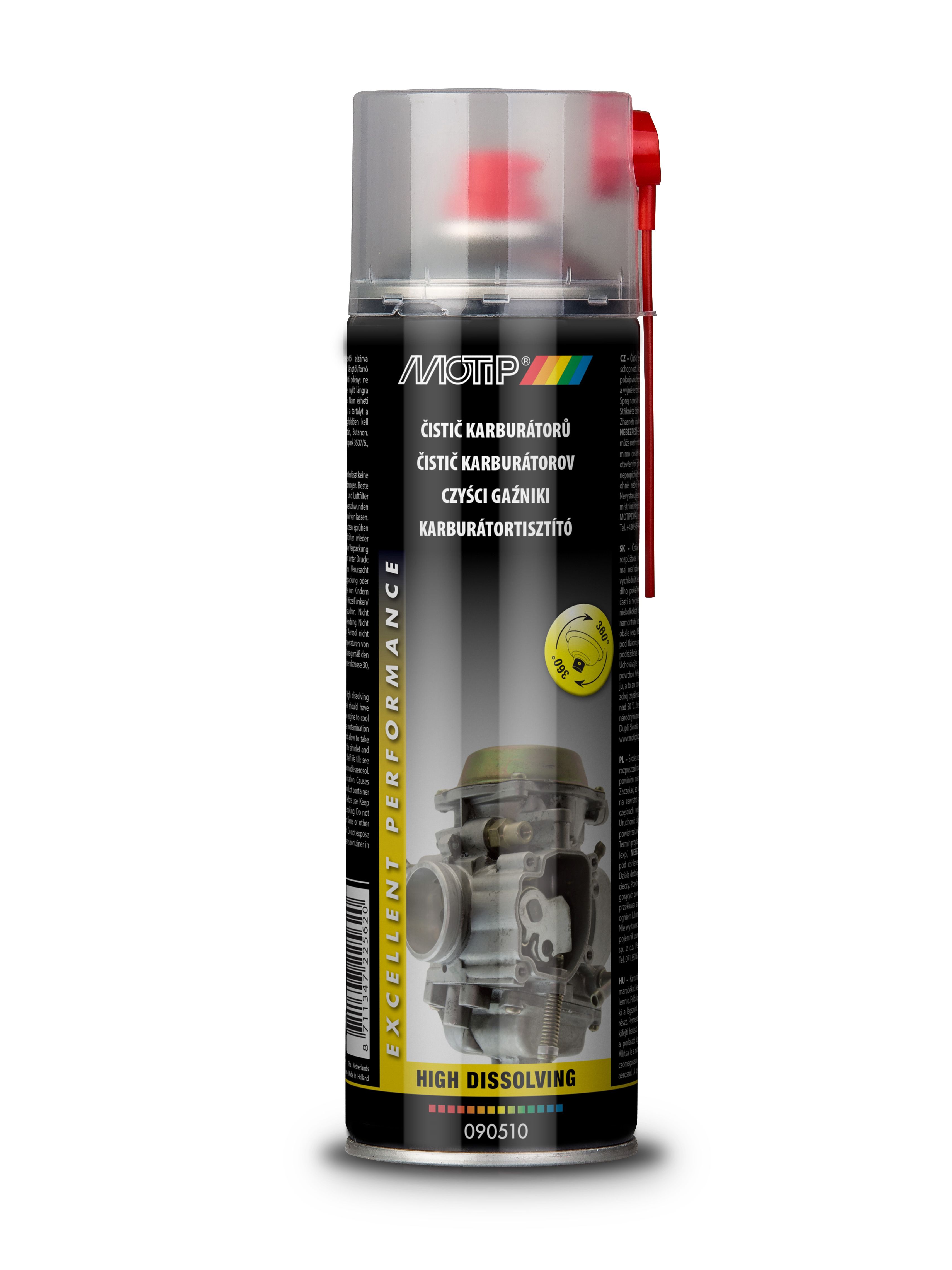 Čistič karburátorů Čistí vnější a vnitřní část karburátorů a ventilů bez nutnosti demontáže. Má výborné rozpouštěcí schopnosti a 360° trysku. Nezanechává zbytky.