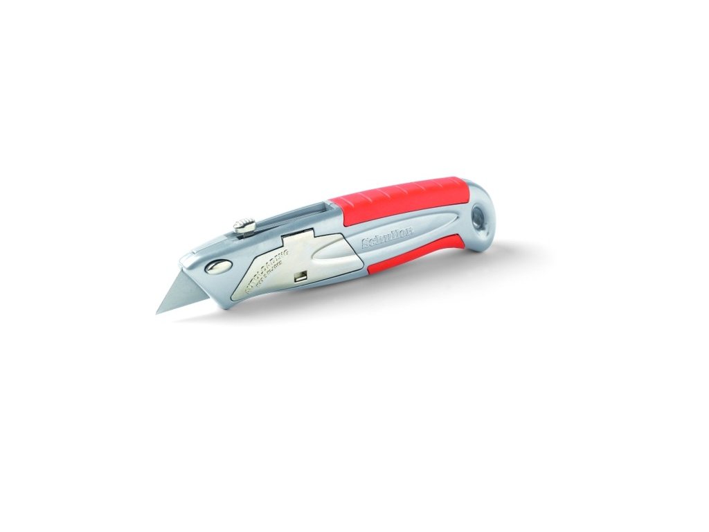 Nůž Nippon-Cutter Schuller 1000 + 5 ks náhradích ostří 18 mm nejlepší kvalita, posuvný, kovový, 2 komponentní rukojeť pro pevné držení, samonabíjecí systém, včetně 5 ks Nippon náhradních ostří.