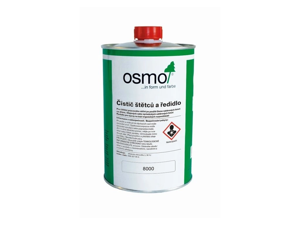 Osmo Čistič štětců a ředidlo na bázi lakového benzínu, bez obsahu aromátů.