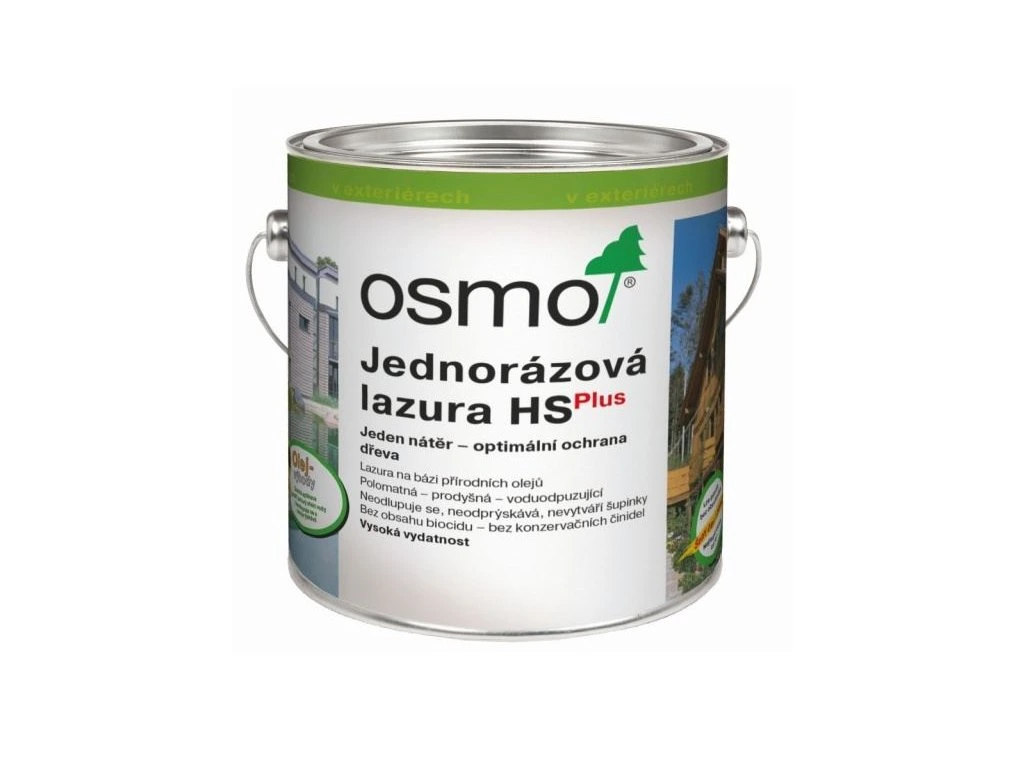 Osmo Jednorázová lazura HS Plus má nízký obsah rozpouštědel, neobsahuje biocidní účinné látky a konzervační činidla, má vysoký obsah sušiny a v důsledku toho je velice vydatná.