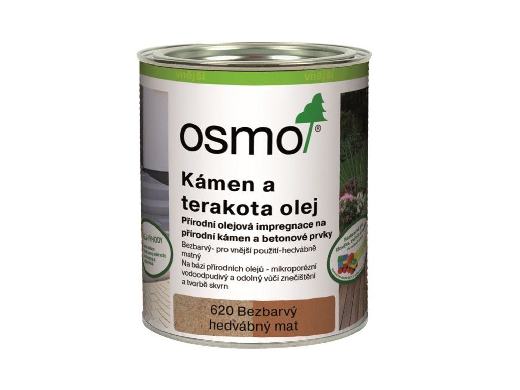 Bezbarvá hedvábně matná přírodní olejová impregnace pro porézní materiály, která nezanechává povrchový film. Osmo Olejem na kámen a terakotu ošetřené plochy jsou vodoodpudivé a méně náchylné ke znečištění a tvorbě skvrn. U takto ošetřených potěru a betonů se významně snižuje tvorba prachu.