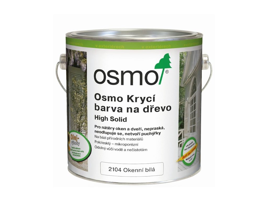 Krycí, lehce hedvábně lesklý porézní nátěr na dřevo s bezkonkurenční trvanlivostí. Osmo Krycí barva na dřevo má velmi vysoký podíl sušiny, dosahující 85 %. Tím je dosažena velmi vysoká trvanlivost a vydatnost nátěru. U zaschlého nátěru nedochází ke slepování navzájem se dotýkajících lakovaných ploch, a to ani při stlačení. Nátěr nepraská, neodlupuje, netvoří šupinky. Je ideální jako profesionální nátěr na dveře, okna a okenice. Nátěr lze aplikovat bez nutnosti přebroušení, základový nátěr není požadován. Snadno zpracovatelný, v průběhu natírání nezasychá.