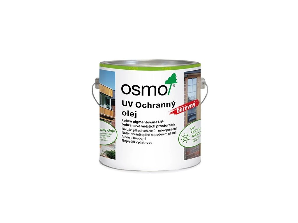 Jako konečný nátěr na již barevně upravené dřevo Osmo UV ochranný olej výrazně prodlužuje interval renovace; jako samostatný nátěr zamezuje procesu šednutí ochranným faktorem UV12 v porovnání se dřevem bez konečné úpravy.