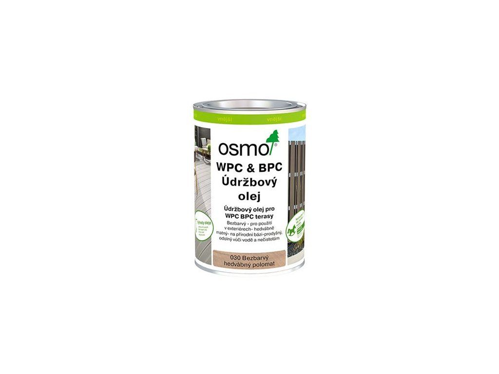 Osmo WPC & BPC údržbový olej je bezbarvý, hedvábně matný údržbový olej, který se vsakuje do dřeva a nevytváří na povrchu žádný film. Díky této impregnaci se ošetřené dřevo stává vodoodpudivým a zvyšuje se jeho odolnost proti tvorbě skvrn a znečištění.
