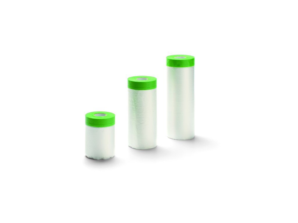 Fólie s páskou v jednom chrání před postřikem barvy. Páska je vyrobena ze speciálního impregnovaného podkladu odolného roztržení, který je z jedné strany potažen akrylovým lepidlem odolným UV záření a perforované elektrostaticky ošetřené fólie