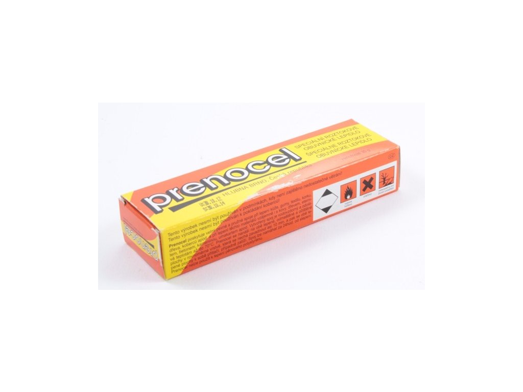 Prenocel - lepidlo na boty poskytuje velmi pevné a pružné spoje při lepení kůže, gumy, textilu, korku, dřeva, koberců apod. a při lepení těchto materiálů vzájemně i s kovy, dřevem, eternitem, betonem, keramikou, umakartem apod. Vytvořený spoj je vodovzdorný a odolává teplotám až 70°C Prenocel se nanáší na obě lepené, odmaštěné a očištěná plochy v rovnoměrné vrstvě, která se nachá zavadnout asi 10 min a pak se obě lepené plochy k sobě přitlačí, případně zatíží. Spoj lze namáhat za 24h. Obsah: 35 g