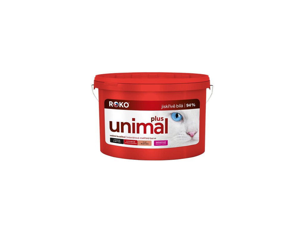 Rokounimal Plus je tradiční levný malířský nátěr s dobrou krycí schopností a se zvýšenou bělostí až 93%. Snadno se zpracovává. Díky optimálnímu obsahu akrylátové disperze nepraská a neodlupuje se. Má velmi dobrou paropropustnost.