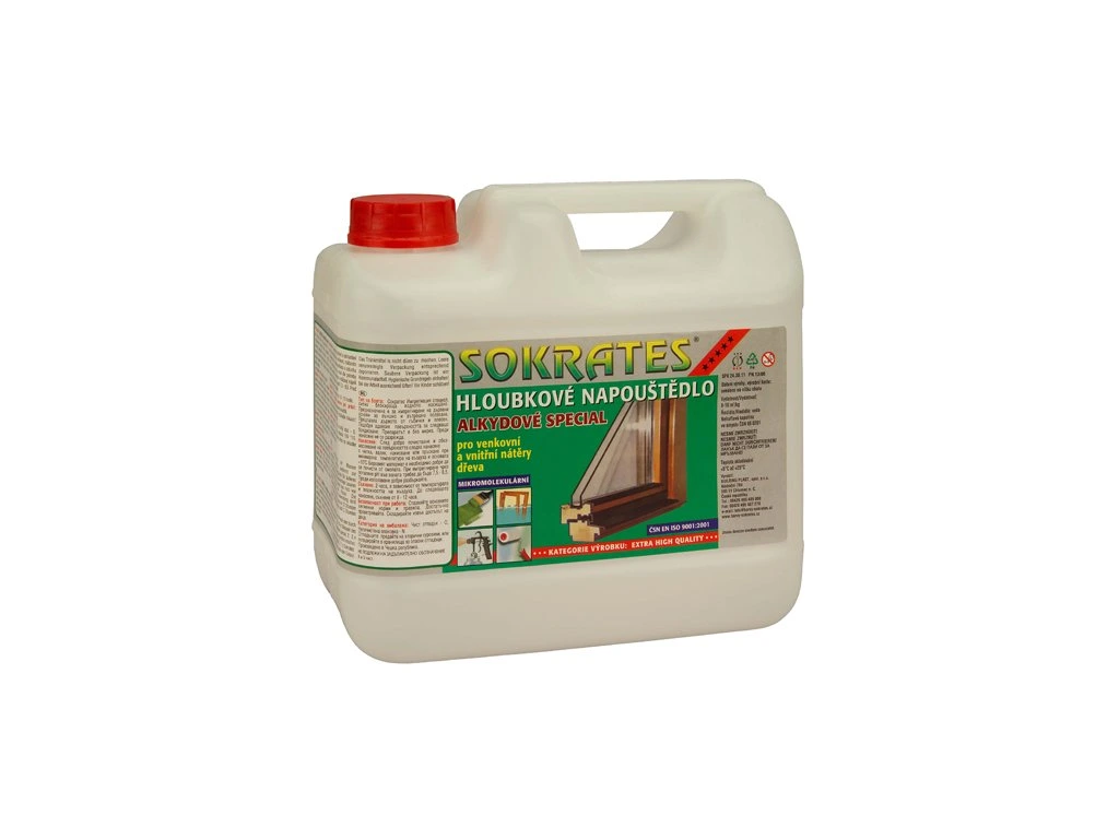 SOKRATES napouštědlo SPECIAL je určené pro venkovní a vnitřní prostředí na dřevěné a minerální podklady. Zesíťující.