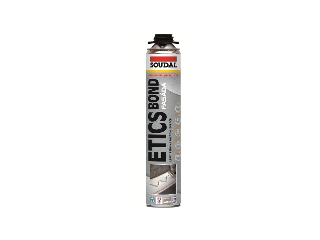 Soudal Etics Bond má vynikající přilnavost na většinu podkladů jako beton, dřevo, dřevotříska, OSB, Cetris apod., velmi rychle vytvrzuje, díky výborné přilnavosti na beton (až 0,3MPa) a požární odolnosti (třída reakce na oheň dle ČSN EN 13501-1:2007 B-s1, d0) je vhodná pro použití v rámci lepených zateplovacích systémů. Následné práce (broušení, kotvení, stěrkování) je možno provádět již dvě hodiny po nalepení. Speciální receptura a naplnění láhve na 800ml poskytuje výjimečnou vydatnost při lepení až 14m2.