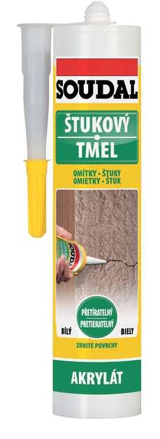 Soudal tmel štukový bílý Přetíratelný speciální tmel na bázi akrylátu vytvářející povrch se zrnitou strukturou. Vhodný pro opravy a spáry zdiva, sádrových povrchů a ostatních porézních podkladů. Vhodný pro vnitřní i venkovní použití.