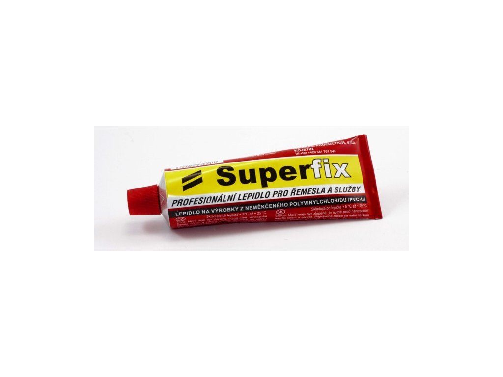 Superfix PVC lepidlo na novodur lepidlo je roztok polymeru ve směsi organických rozpouštědel, které se používá pro lepení materiálů z neměkčeného PVC – novoduru. Je možné použít ke spojům PVC, ABS, nelehčeného polystyrenu, kůže, gumy, kovu, textilu, dřeva, lepenky, papíru atd. Je vhodným montážním lepidlem pro lepení PVC trubek a armatur při sestavování a montáži vodovodních odpadů. Vlastnosti: Lepidlo je čirý, bezbarvý, viskózní roztok. Parametry: Barva: čirá Pevnost lepeného spoje Novodur/Novodur ve smyku: min. 1,5 MPa. Hustota: 1,08 g/cm3 Konzistence (výt. pohárek 6 mm): 40-70 sec Obsah org. rozpouštědel: 0,78 kg/kg produktu Obsah organického uhlíku: 0,22 kg/kg produktu Obsah netěkavých látek: 22 %objemových informativní hodnoty Návod na použití: Pro dosažení co možná nejlepších vlastností lepeného spoje doporučujeme následující pracovní postup: Před vlastním lepením styčné plochy řádně odmastěte a zdrsněte. Pro odmaštění použijte aceton nebo acetonové ředidlo. Naneste lepidlo v přiměřené vrstvě na obě lepené plochy a přiložte k sobě. Při lepení trubek je třeba dodržet co nejmenší toleranci lícovaného spoje. Rovné lepené plochy v místě spoje je po dobu zasychání nutno zatížit. Maximální pevnost dosáhne spoj po 24 hodinách, při teplotě 20°C. Při nižší teplotě je tato doba úměrně delší. Vodu je možno do slepeného potrubí pouštět již po 2 hodinách schnutí. Bezpečnost a ochrana zdraví při práci: Lepidlo Superfix je hořlavá kapalina I. Třídy nebezpečnosti. Při manipulaci je třeba dodržovat pokyny pro manipulaci s hořlavými kapalinami dle ČSN 650201 a pokyny obsažené v bezpečnostním listu. Symbol nebezpečí podle zákona o látkách a chemických přípravcích: Xn zdraví škodlivý Na lepidlo Superfix byl v souladu se zákonem č.22/1997 Sb. vydán dne 2.1.2002 Zkušebním ústavem lehkého průmyslu certifikát č.105 0818 113. Lepidlo udržujte mimo dosah dětí!